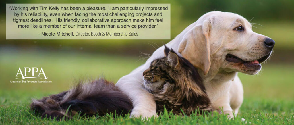 Meet Chuck, our photographer/videographer. Tim & Chuck would engage members at the expo event, generating new content in the form of testimonials, photos, and video. We turn this content into forward advertising and marketing for the membership Department of the show’s sponsor, the American Pet Products Association.